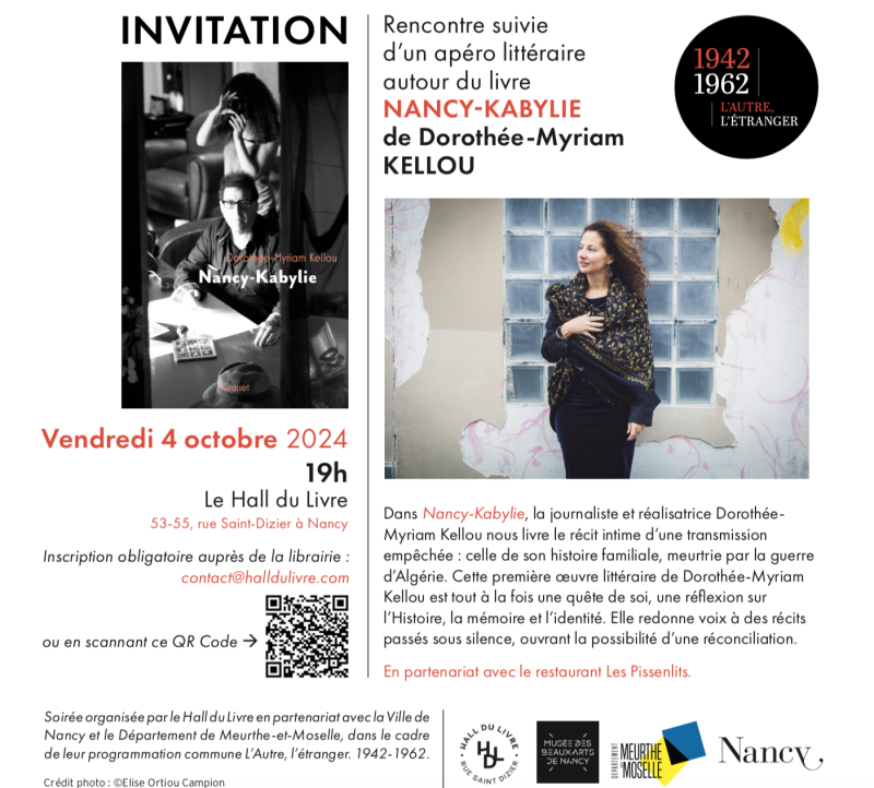 Dans Nancy-Kabylie, la journaliste et réalisatrice Dorothée- Myriam Kellou nous livre le récit intime d’une transmission empêchée : celle de son histoire familiale, meurtrie par la guerre d’Algérie. Cette première œuvre littéraire de Dorothée-Myriam Kellou est tout à la fois une quête de soi, une réflexion sur l’Histoire, la mémoire et l’identité. Elle redonne voix à des récits passés sous silence, ouvrant la possibilité d’une réconciliation.