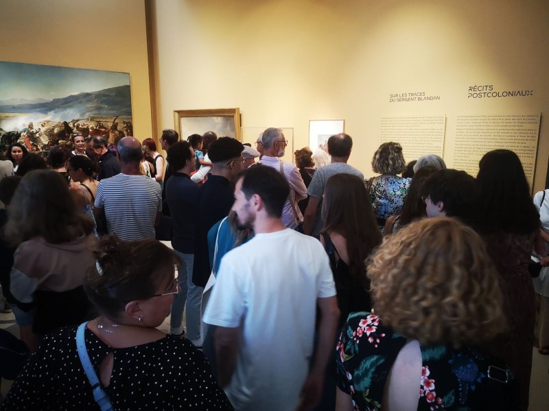 L’accrochage pluriannuel Récits postcoloniaux est une relecture des collections des musées nancéiens à la lumière de l’histoire coloniale européenne. L'exposition Sur les traces du sergent Blandan revient sur la conquête coloniale de l'Algérie à travers l'histoire de l'un de ses protagonistes, le sergent Blandan. Elle est issue d’un travail pensé par Susana Gállego Cuesta, directrice du musée des Beaux-arts, Kenza-Marie Safraoui, conservatrice du patrimoine et Marion Pacot, attaché de conservation du patrimoine, avec des élèves de première du lycée Jeanne d’Arc de Nancy, leur professeur d’histoire-géographie Etienne Augris et les documentaristes Malek et Dorothée Myriam Kellou.
